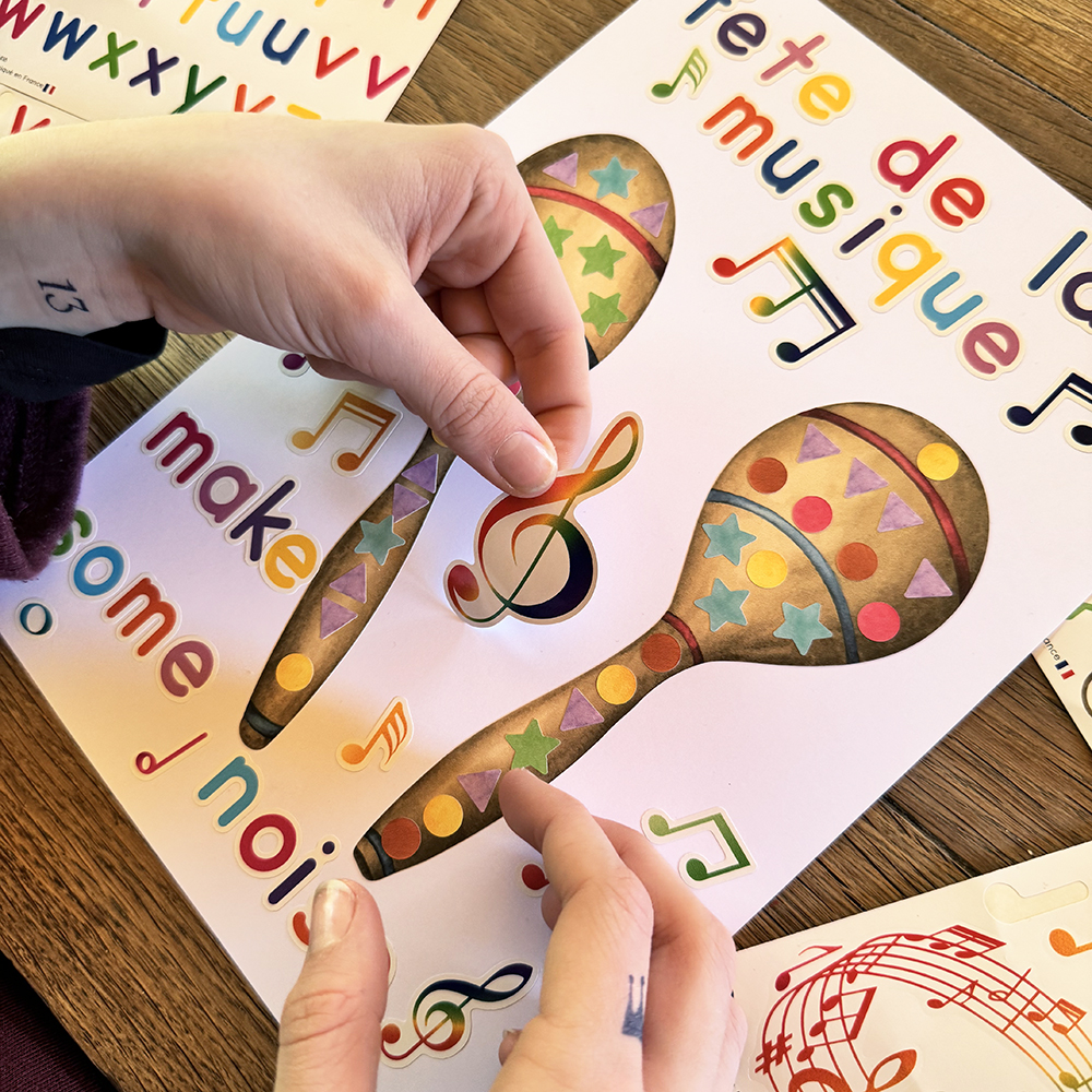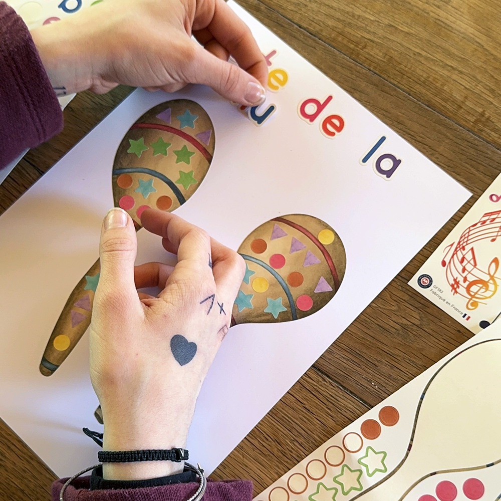 Pour les activités autour de la musique, nous avons créé une nouvelle planche de gommettes maracas à assembler. Ainsi, elle associe créativité et apprentissages essentiels.