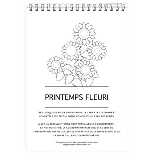 Un cahier de 20 dessins sur le thème du Printemps à colorier et à décorer avec plus de 270 gommettes fournies, à l’intention des enfants à partir de 3 ans.