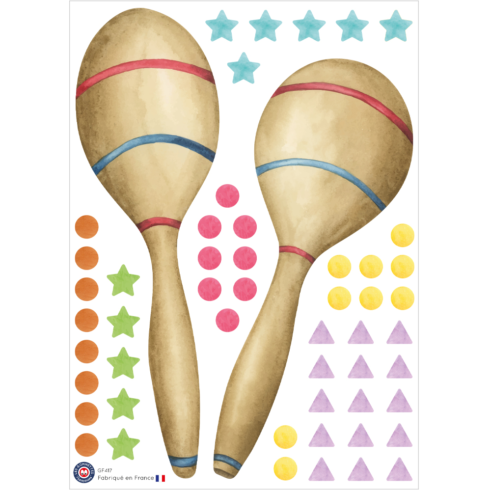 Dimension des autocollants Maracas à assembler : environ 1 à 20,4 cm – Planche A5