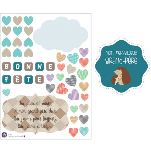 Le kit comprend : 45 gommettes Fête des grands-pères + 1 stickers Mon merveilleux grand-père + 1 carte recto / verso pré-imprimée à compléter.