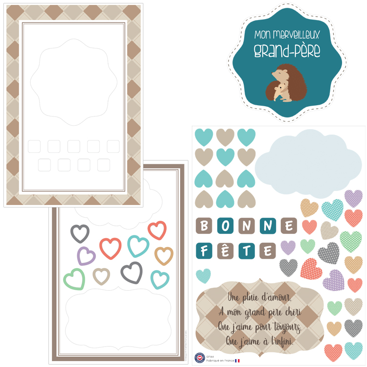 Le kit comprend : 45 gommettes Fête des grands-pères + 1 stickers Mon merveilleux grand-père + 1 carte recto / verso pré-imprimée à compléter.