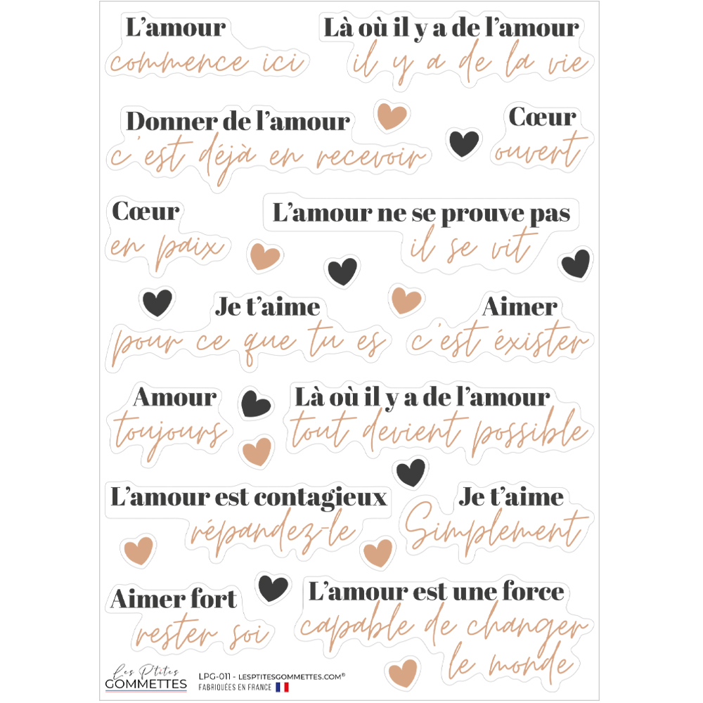 Dimension des autocollants Amour : environ 1 à 9,7 cm – Planche A5